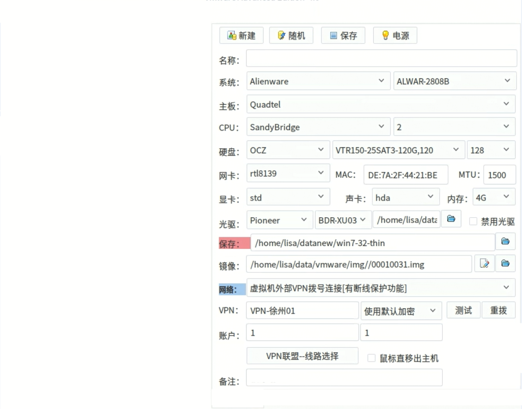 Linux硬件级虚拟机系统说明 01. 一键随机生成虚拟机配置信息 电脑配置要求: Linux硬件级虚拟机系统 收费标准: NO.1、2017最新 Linux高级版系统软件+软件授权码一个+软件视频教程1份+专人售后+送Linux稳定版系统=1280元/年(支持免费升级) 购买流程: 页面首页展示教程为2016 linux硬件级虚拟机系统教程,目前更新至最新稳定,版本,以具体使用实际版本功能为主!